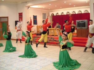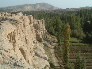 トルファンは盆地なので夏は猛烈に暑いそうです。カレーズという地下水脈のお陰で水は豊富で果物が特に美味しいところです。とくにハミウリや葡萄が有名です。淡黄色のハミウリは上品な美味さがりました。トルファンでの物価はタマゴ1s=5元(80円)、リンゴ3個=5元、羊肉1s=20元(320円)。ここで昼食に食べたうどんは日本と同じ味の一品でした。なぜここにこのようなうどんがあるのか、とても不思議に思いました。