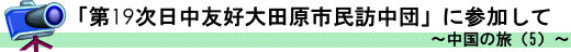 | 先ずは全員無事に帰国できたことにたいし旅行社はじめ関係者のご努力と参加者のご協力のお蔭であり感謝申します。今回の旅は蘇州市との市民交流の旅行なのか単に中国を知る旅行なのか狙いがハッキリしないため無理な日程で時間に追われ旅の思い出が表面的であったのが私には少し心残りだった。