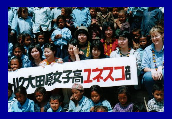 大田原女子高校ユネスコ部の皆さんと子供達の記念撮影。